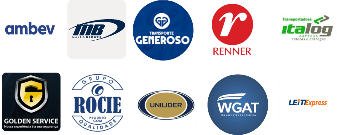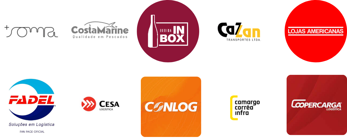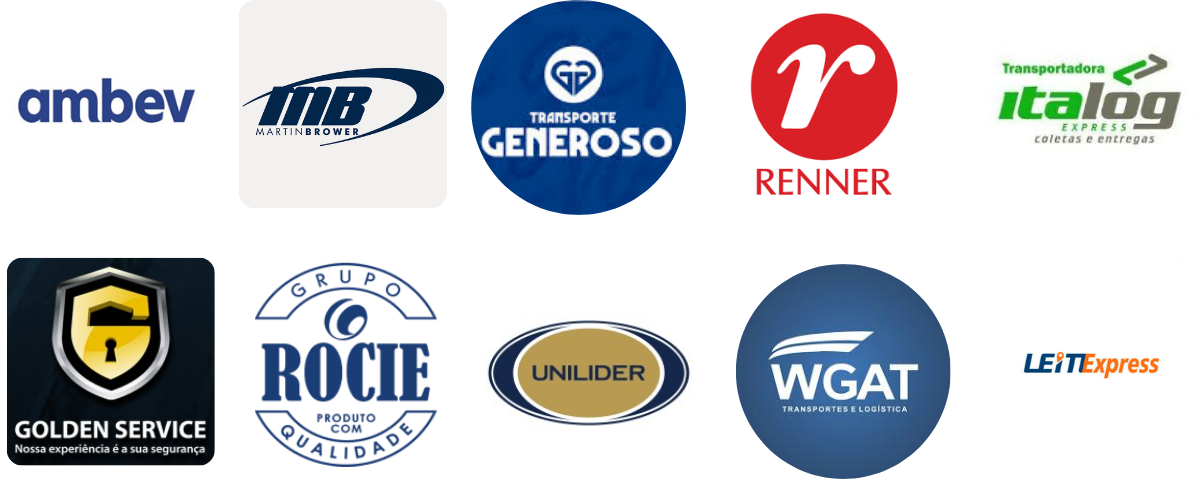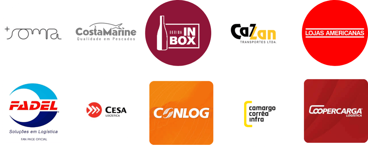 Nossa carteira de clientes conta com grandes empresas nacionais e multinacionais. Temos orgulho de sermos parceiros estratégicos de organizações como Ambev, Grupo SOMA (Farm, Animale, NV, Foxton, entre outras), MMA Transporte, Generoso, Martin Brower, Renner, Atlas, Fadel, Grisweb, Xará Transportes, Italog e Grupo Rigarr.